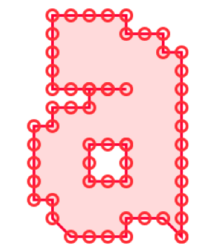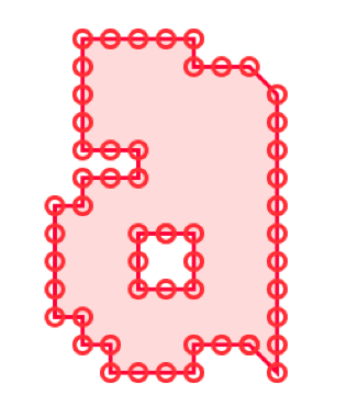 This is a good starting point, but to show the different effects of different algorithms on things like redundant linear points, we need a shape with more vertices along the straights, and fewer along the curves.