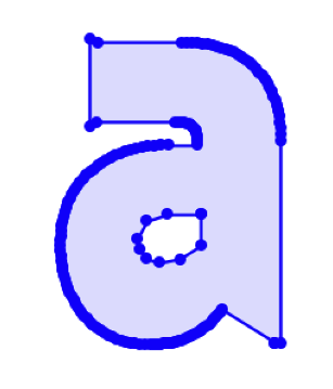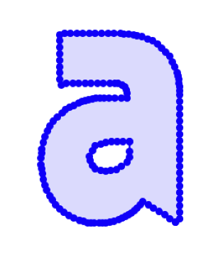 SELECT ST_RemoveRepeatedPoints(ST_Segmentize(ST_Letters('a'), 1), 1) AS a
